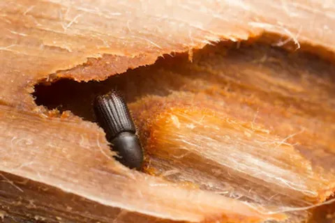 Small sized beetles that survive on the starch found in wood are called Wood borers. They damage wood at the larval stage for food.